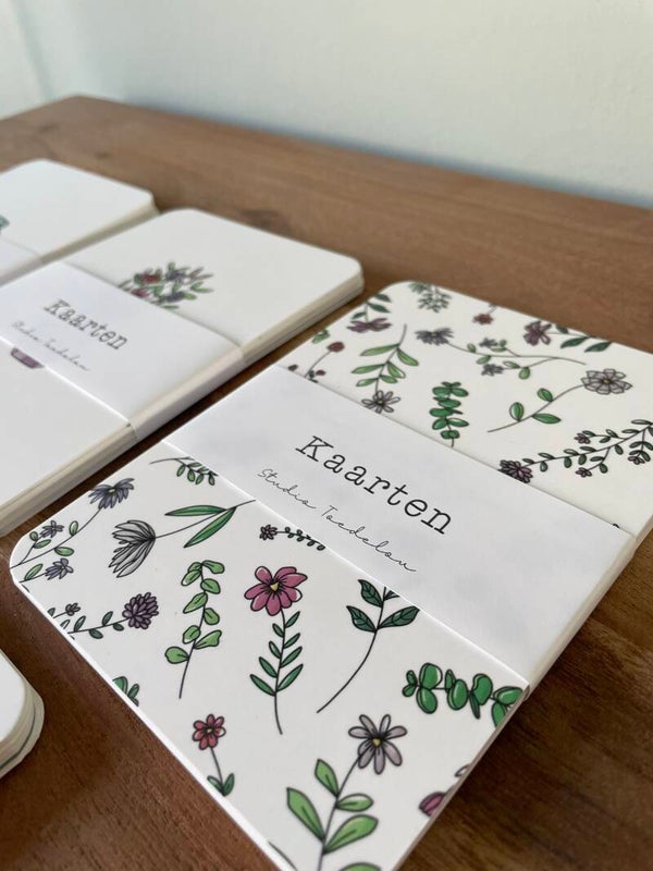 De nieuwe collectie kaarten van Studio Toedelou is gedrukt op 100% houtvrij, 350 grams sulfaatkarton. De kaartjes hebben een luxe matte afwerking, waardoor je écht een kwaliteitskaartje in handen hebt. De achterkant is goed beschrijfbaar, zoals je bij een kaartje mag verwachten! Onderaan de kaart staat het subtiele logo van Studio Toedelou, zodat er nog genoeg ruimte overblijft voor een lieve boodschap.
