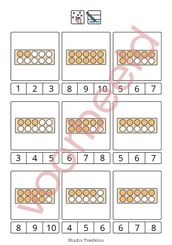 - Flitskaartjes: vingers / eierdozen / dobbelstenen / 0 t/m 10